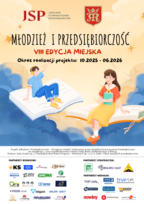 Z dumą wspieramy projekt realizowany przez Jasielskie Stowarzyszenie Przedsiębiorców we współpracy z Miastem Jasłem oraz lokalnymi firmami. W okresie od października 2025 r. do czerwca 2026 r. ponad 100 uczniów jasielskich szkół podstawowych będzie rozwijać wiedzę i umiejętności z zakresu ekonomii, prawa w biznesie oraz przedsiębiorczości.